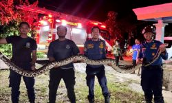 Disdamkarmat Barut Evakuasi Ular Piton 4 Meter di Halaman Rumah Warga